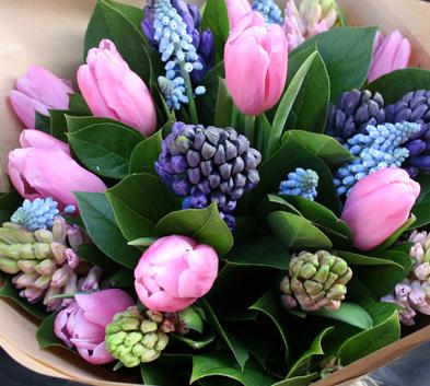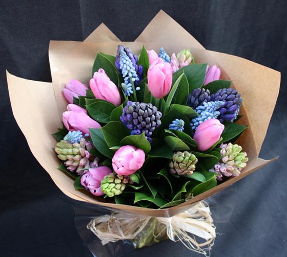 Simply beautiful hyacinth and tulip spring fresh bouquet!
