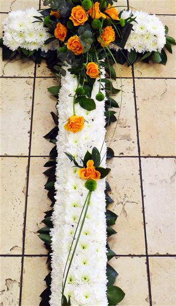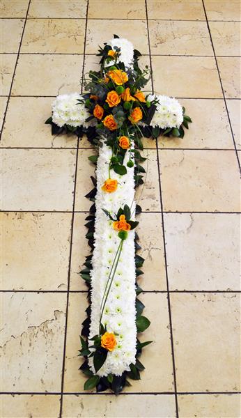 A family cross available as a 2ft (61cm) tribute or in a range of sizes. Flower spray available in your choice of colours with an optional ribbon surround.